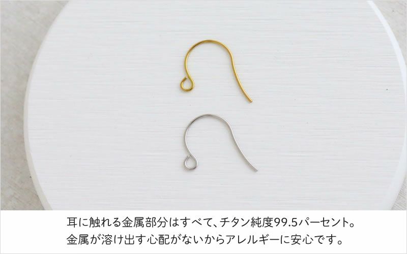 ピアスフック金具:99.5%チタン素材(アレルギー対応済)