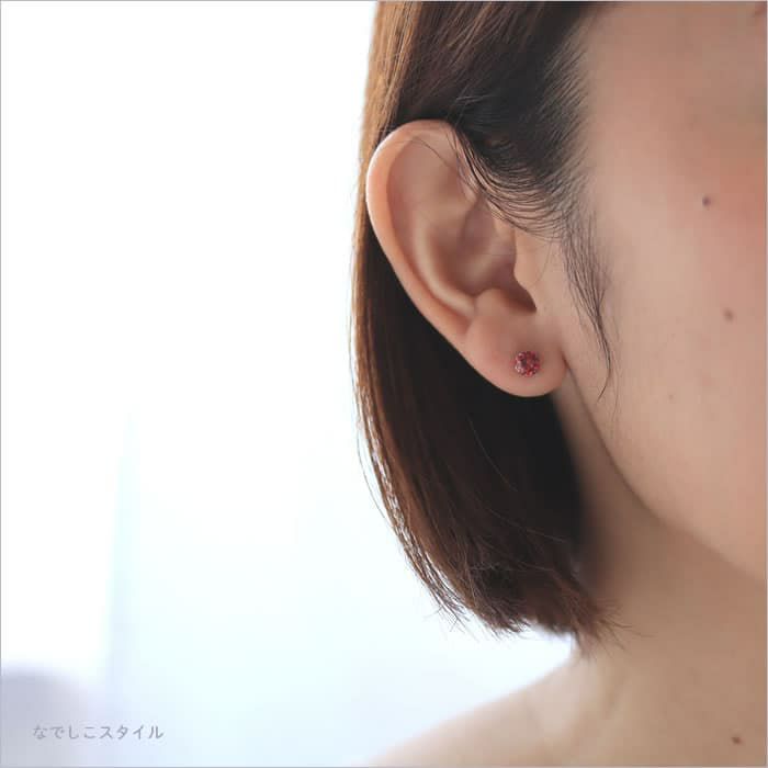 2個目のピアスを開けて半年が経ちました。なでしこピアスさんのピアスのおかげで順調にピアスホールが育っています。 三日月ピアスとスワロフスキージルコニア5mmの重ね付けを楽しんでいるのでルビーの大粒ピアスが欲しくて購入しました。赤ワインのような深い色味と存在感がありとても気に入っています。 なでしこピアスさんのピアスはこれで12個目になります。着け心地も良くシンプルなデザインなので飽きることなく他のピアスには興味が湧きません。これからもよろしくお願いします!