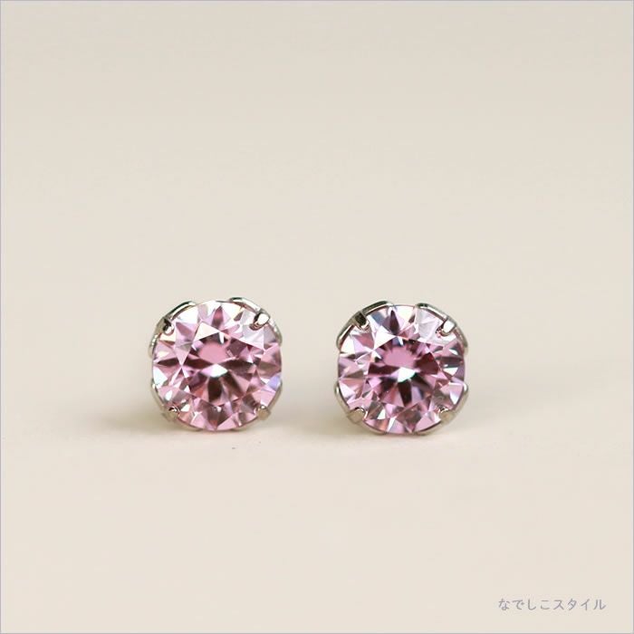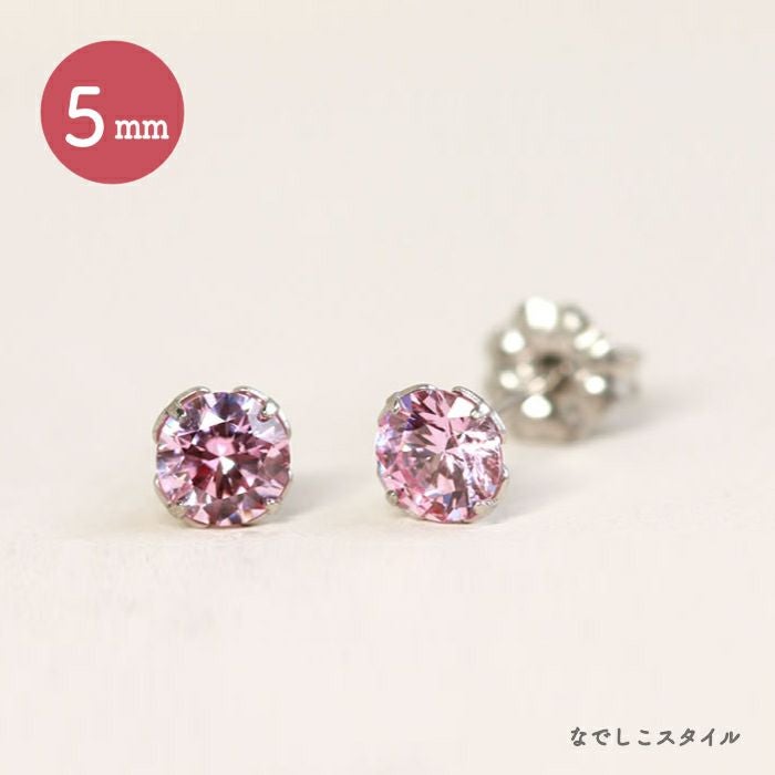 大粒スタッドピアスキュービックジルコニアサファイアピンク5mmおしゃれピアスイメージ