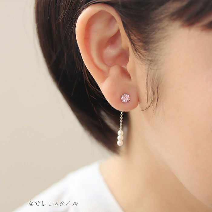 バックキャッチを付け替えるだけでお出かけピアスに印象チェンジします。