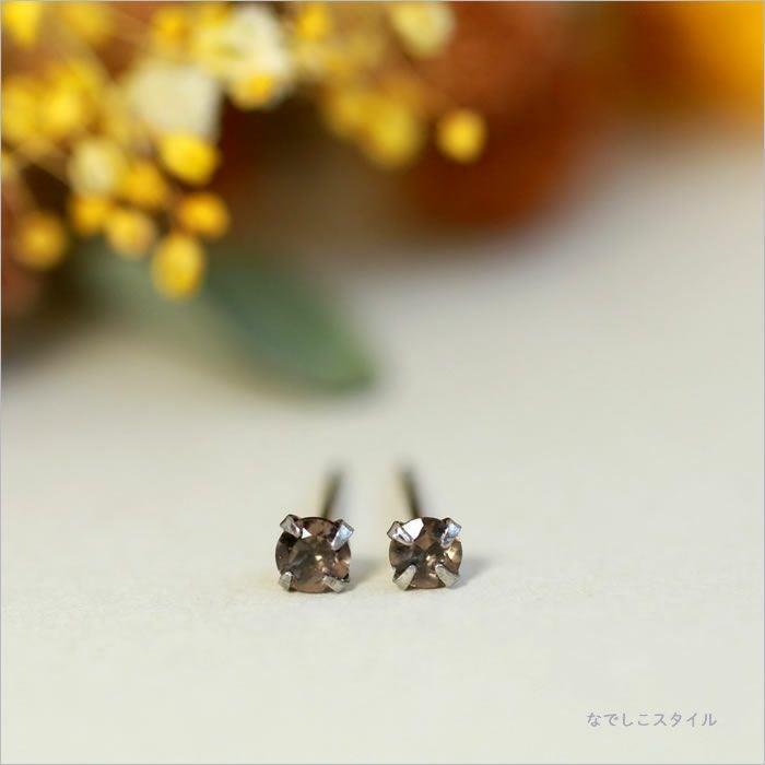【金属アレルギー対応】 天然石の一粒ラウンドカット「スモーキークオーツ」