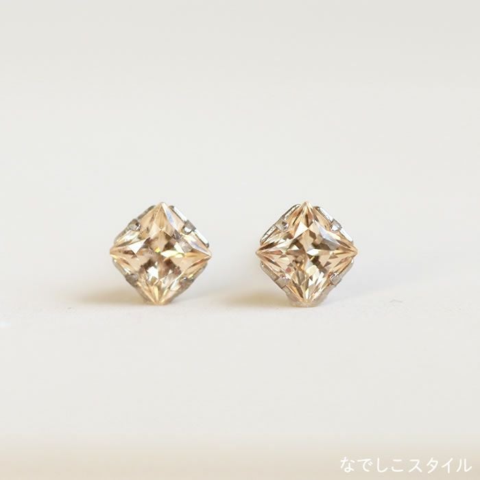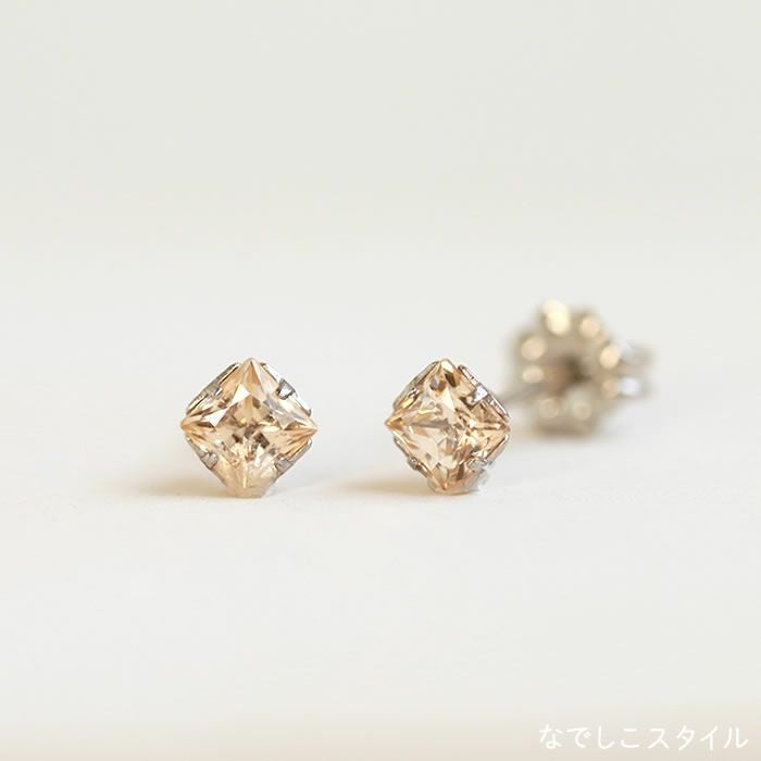 大粒スタッドピアスキュービックジルコニアカルテットシャンパンダイア4mmおしゃれピアスイメージ