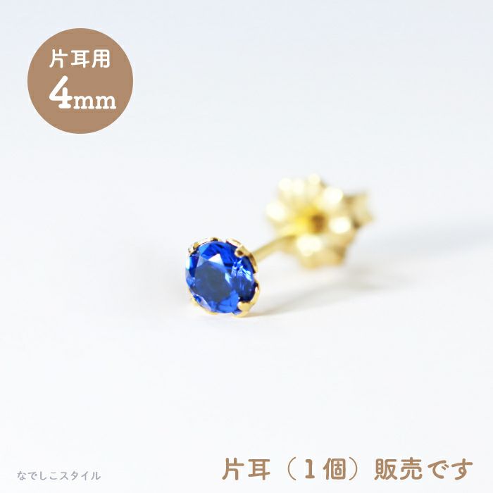 一粒キュービックジルコニア「ゴールドカラー/アウイナイト」4mmの片耳(1個だけ)販売のページです。
