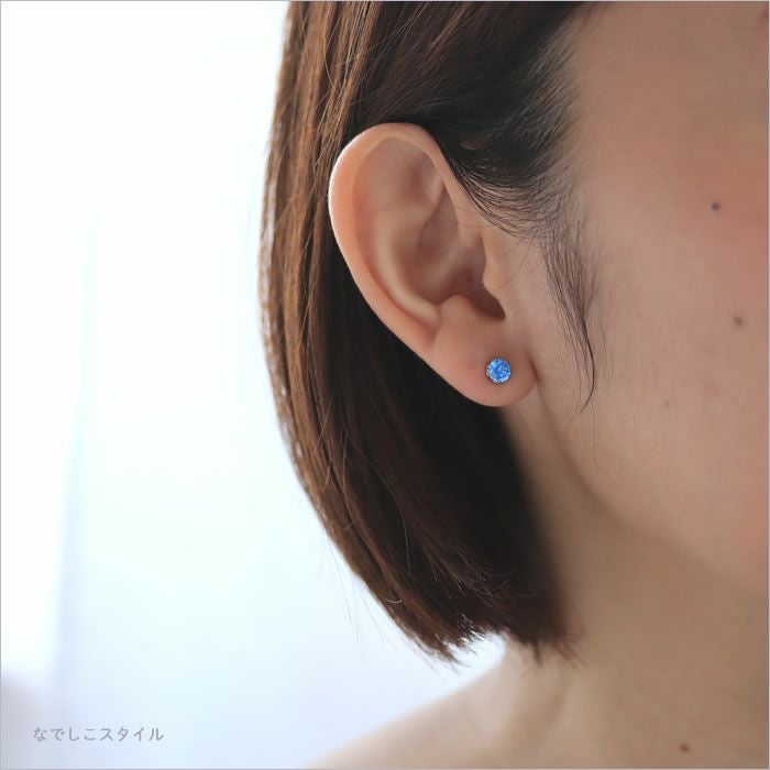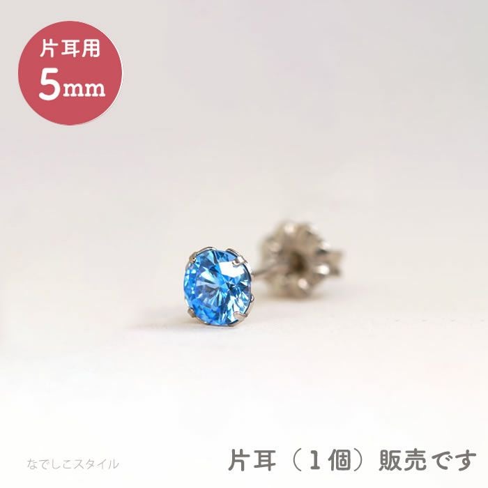 一粒キュービックジルコニア「マリンブルー」5mmの片耳(1個だけ)販売のページです。