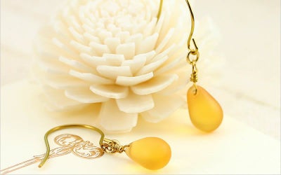 チェコグラス/ティアドロップピアス「マットトパーズ」の片耳(1個だけ)販売のページです。