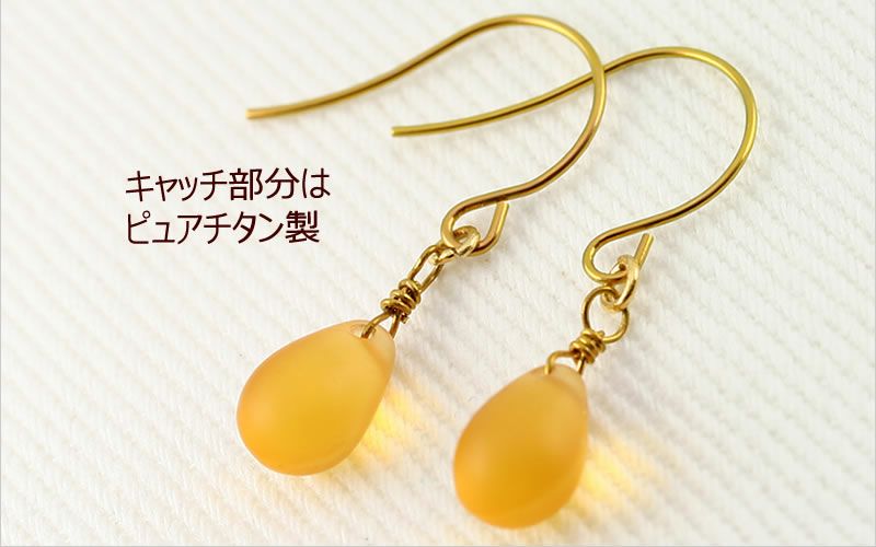 【金属アレルギー対応】 【※片耳販売※】ティアドロップピアス「マットトパーズ」
