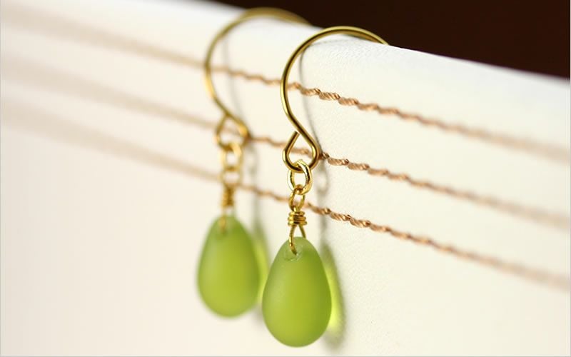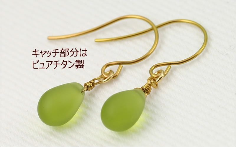 チェコグラス/ティアドロップピアス「マットオリバイン」の片耳(1個だけ)販売のページです。