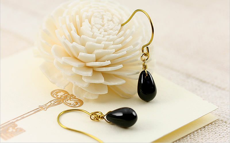 【金属アレルギー対応】 【※片耳販売※】ティアドロップピアス「ジェットブラック」