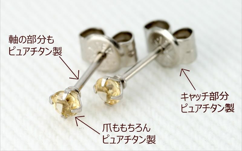 ピアス金具(ポスト・キャッチ・石留め): アレルギーに安心なピュアチタン製