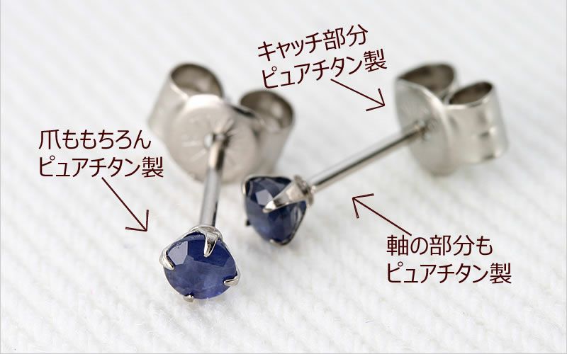 ピアス金具(ポスト・キャッチ・石留め): アレルギーに安心なピュアチタン製