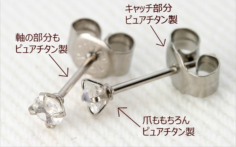 ピアス金具(ポスト・キャッチ・石留め): アレルギーに安心なピュアチタン製