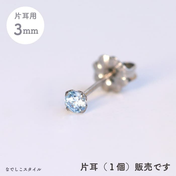 一粒キュービックジルコニア「サファイアブルー」3mmの片耳(1個だけ)販売のページです。