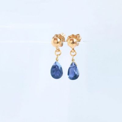 天然石のピアスが欲しくて、揺れないタイプも含めて迷いましたが こちらを選びました。 天然石なので、どんな色が届くかな…薄くても濃くても私のところに来てくれる特別な色♡大切にしよう!と、楽しみに待ちました。 届いたのは4つ並んだ紹介写真の右端くらいの中間の濃さで、小ぶりながら、ちらちらと揺れる姿がかわいらしくて存在感がちゃんとあり、光に当たると深いブルーが反射して綺麗です。 ゴールドの金具は肌なじみが良く、キリッとしたブルーがクールになりすぎなくて 少し優しい印象になりますね。 汗っかきなのでこれからの季節に安心して使えるピアスが増えてとっても嬉しいです。