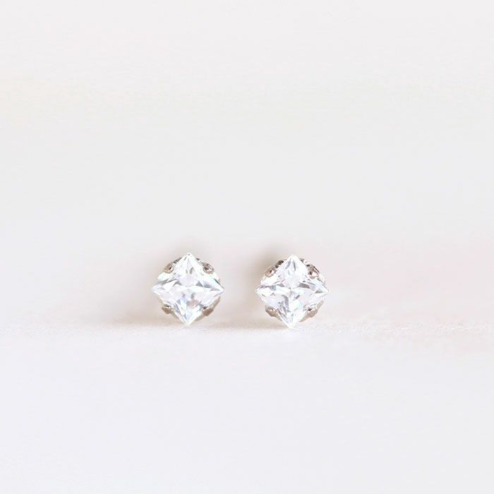 ひし形のジルコニアは、シャープで大人っぽい雰囲気に。