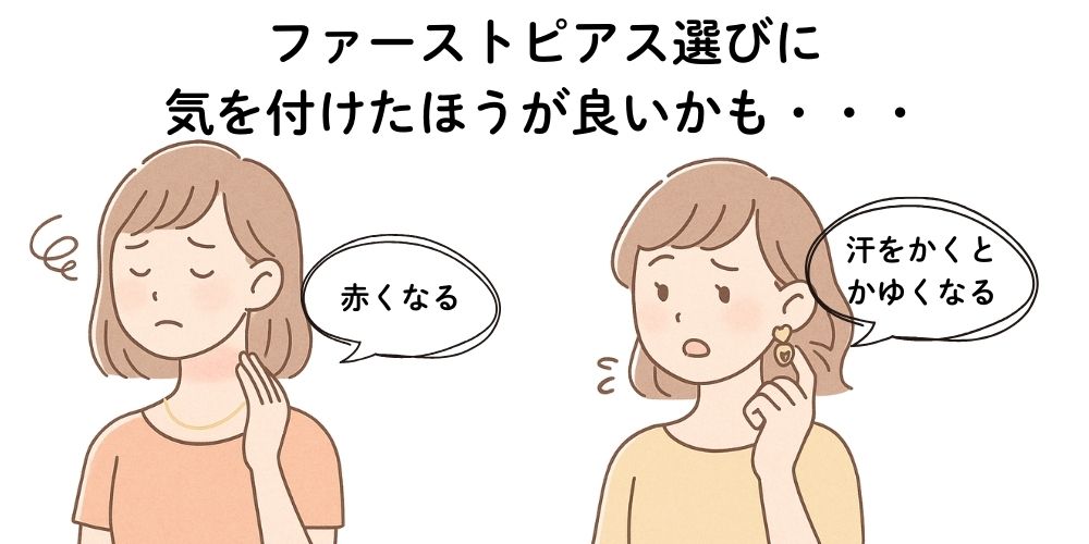 目立った症状がない人でも、体調や季節の変化などで急に反応が出ることがあります。 とくにピアスは肌に長時間ふれ続けるアクセサリー。だからこそ、素材選びがとても大切なんです。