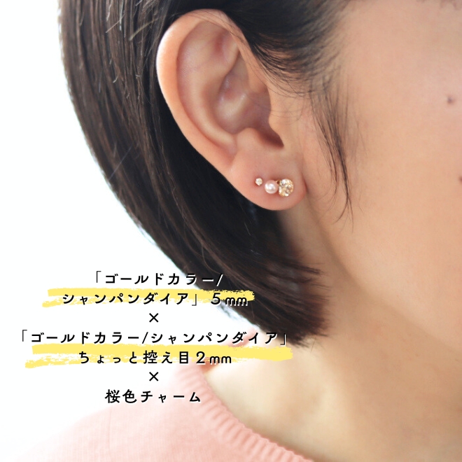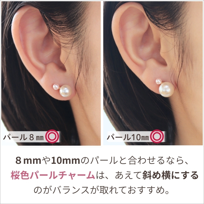ピアスが3mm以下のサイズになると、バランスというよりも桜色パールのチャームの輪っかが見えてしまうのが気になってしまいました。