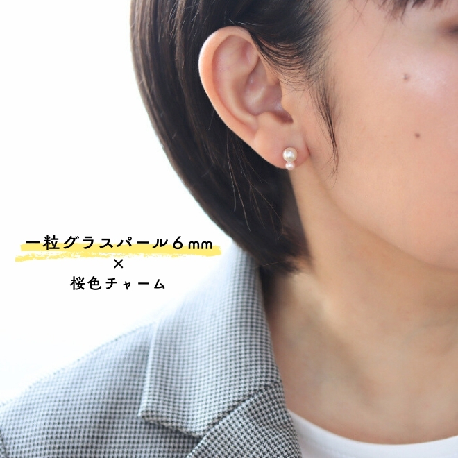 そこで今回は、定番のパールピアスと桜色チャームを合わせて、実際に合わせてみました。