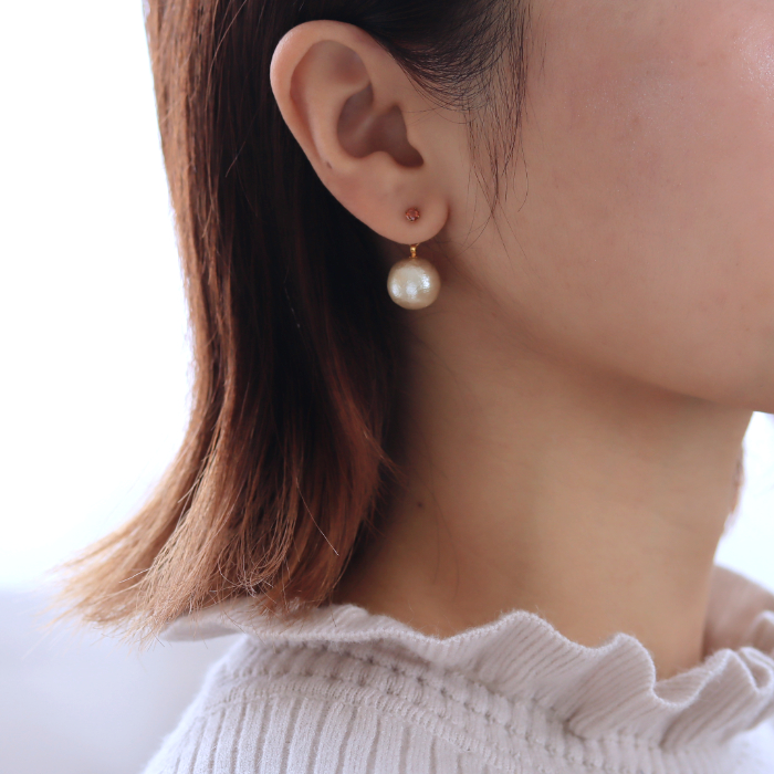 ふんわり軽いコットンパールキャッチでぐっと華やかな印象になります。