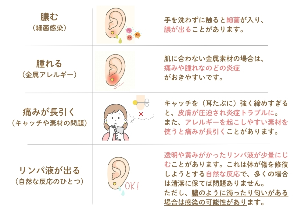 - ピアスや耳に触れるときは、必ず手を清潔に。
